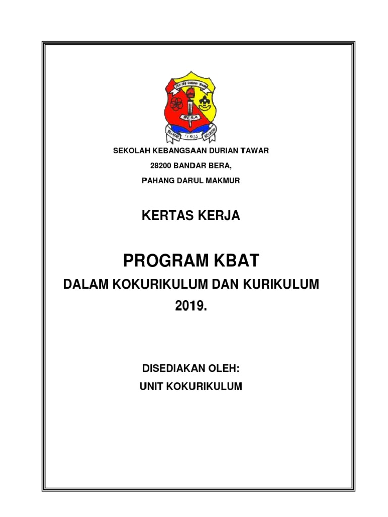 0 penilaian 0 menganggap dokumen ini bermanfaat 0 suara 203 tayangan 3 halaman. 089 851352 PROGRAM KBAT BARA BACA KIRA Tarikh Januari hingga Oktober Tempat SK Kunak 2 Kunak Sasaran Semua Murid BARA Tahap 1 SK Kunak 2 Anjuran Unit Kurikulum 1 1. Dalam PPPM telah jelas digariskan 6 aspirasi murid yang antara lainnya ialah.